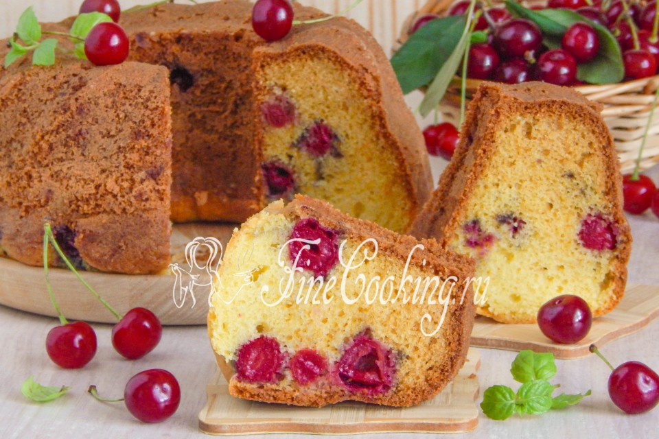 We brew tea and enjoy a fragrant cake with cherries. Moderately sweet cupcake dough is remarkably in harmony with a pleasant sourness of berries. You will like it too — be sure to prepare such a cake for your family!