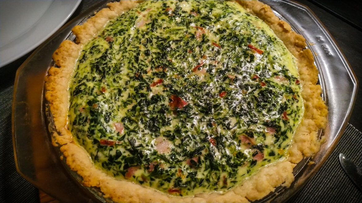 Today we have a guest from sunny Greece. We prepare an open pie on a shortbread dough with a very tasty egg filling from Feta, acute chorizo sausage, pork smoked brisket, cream and spinach.