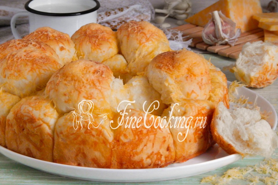 The tastes are the most fragrant monkey bread with the heat of the heat, although this is not recommended. Crushing brown crust, airy crumb and stretching cheese inside — this is a real treat. A saturated creamy-saturated taste and subtle aftertaste of garlic will make you return to the kitchen again and again … I assure you, such a large loaf will hardly linger on the table for at least one day! Tanyusha, thank you very much for the order! Special thanks from my home (they have already asked me to bake this bread).