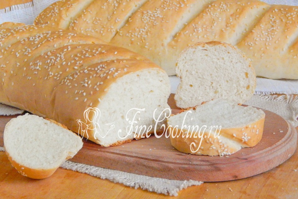 The recipe for this delicious bread includes ingredients such as: wheat flour, warm water (about 50 degrees), egg whites, sugar, salt, butter, active dry yeast and sesame seeds for sprinkling.