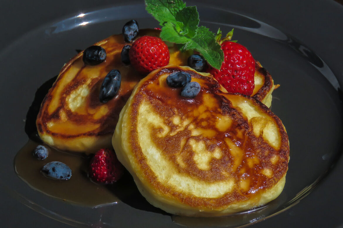 We heat the pan over medium heat, pour a little dough and bake for two or two and half a half on one side for two or two minutes …