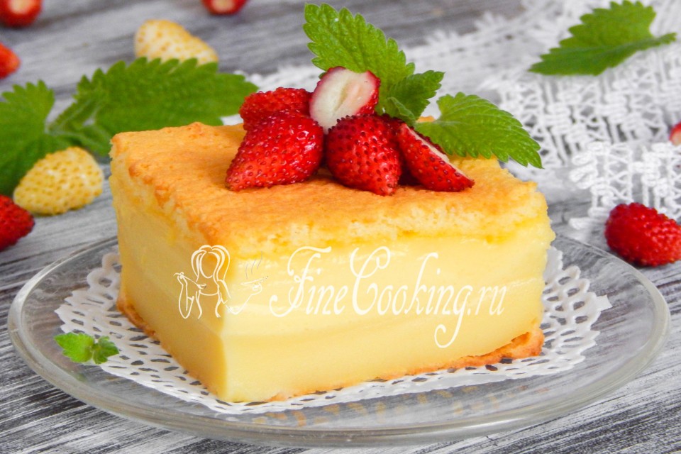 We cut the pie with portions and serve tasters, carefully studying their reaction. Be prepared for criticism or praise — how it will work. My husband, for example, likes the smart cake, but the son refused to eat the lower layer — I was eating. Everything that was not eaten is stored in the refrigerator. In the morning with unsweetened coffee, by the way, for me a smart cake is just a fairy tale.