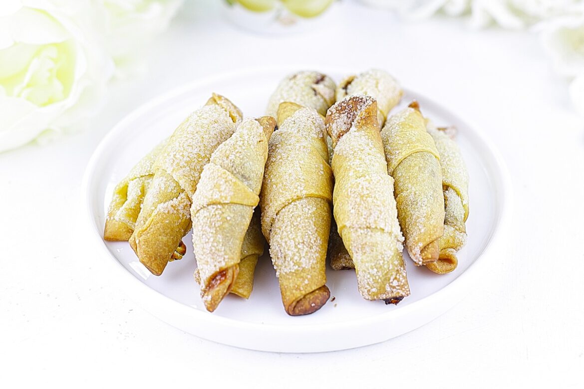 Cut the round layer of the dough into 8-16 segments, depending on what size you want to get the slings. I cut the first piece of dough into 16 segments. The cuckrovs turned out to be very small. The rest cut into 8 segments.