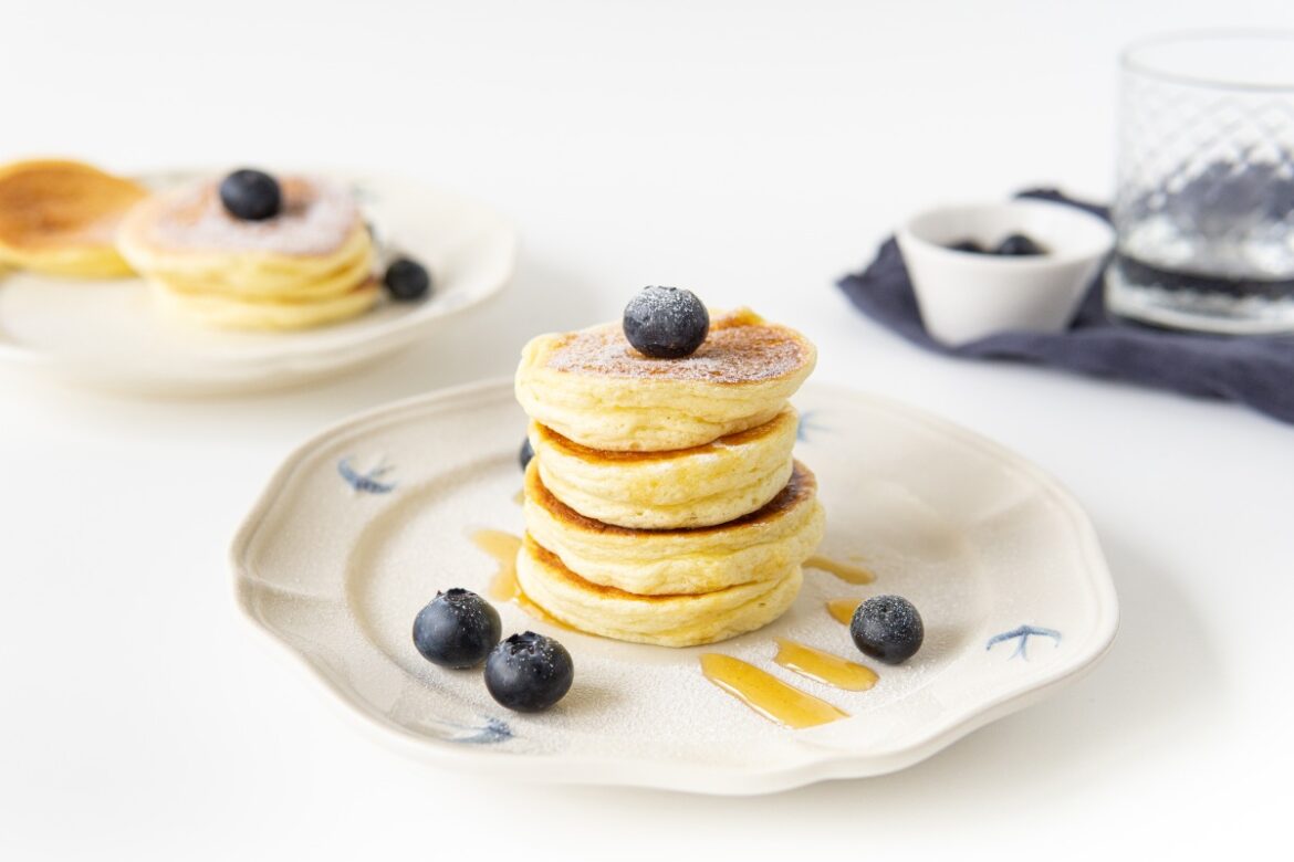 Gently put ready -made Japanese pancakes on a plate. Sprinkle with powdered sugar before serving, decorate with fresh berries, add maple syrup or honey. Serve immediately while they are warm, lush and airy.