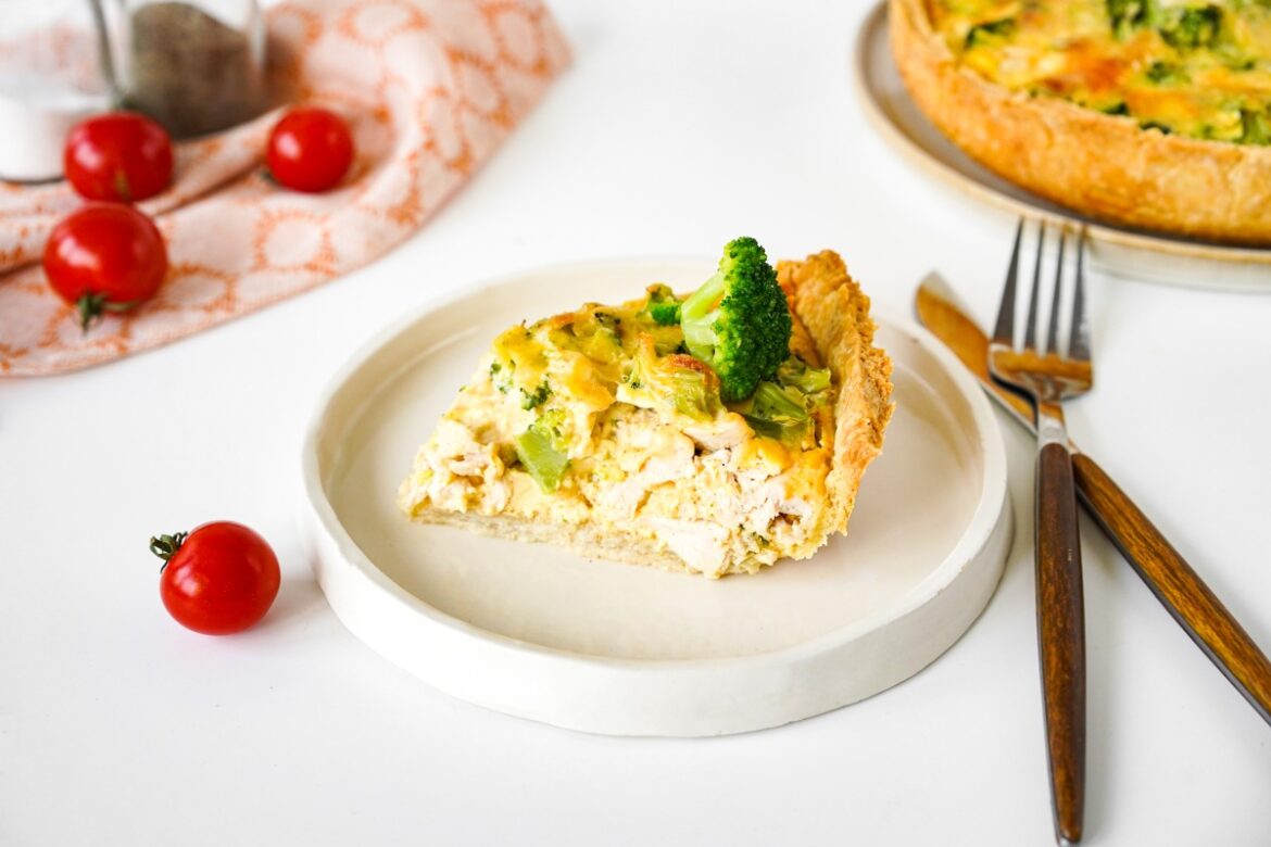Kish with broccoli, chicken and cheese is ready. Gently remove it from the form, cut it into portioned pieces.