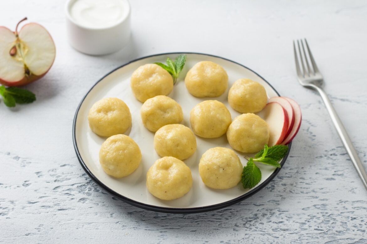 Serve lazy dumplings with fruit filling steamed hot with sour cream, whipped cream or thick yogurt. You can pour them with melted butter. These dumplings can be submitted for breakfast, afternoon snack or as a snack.