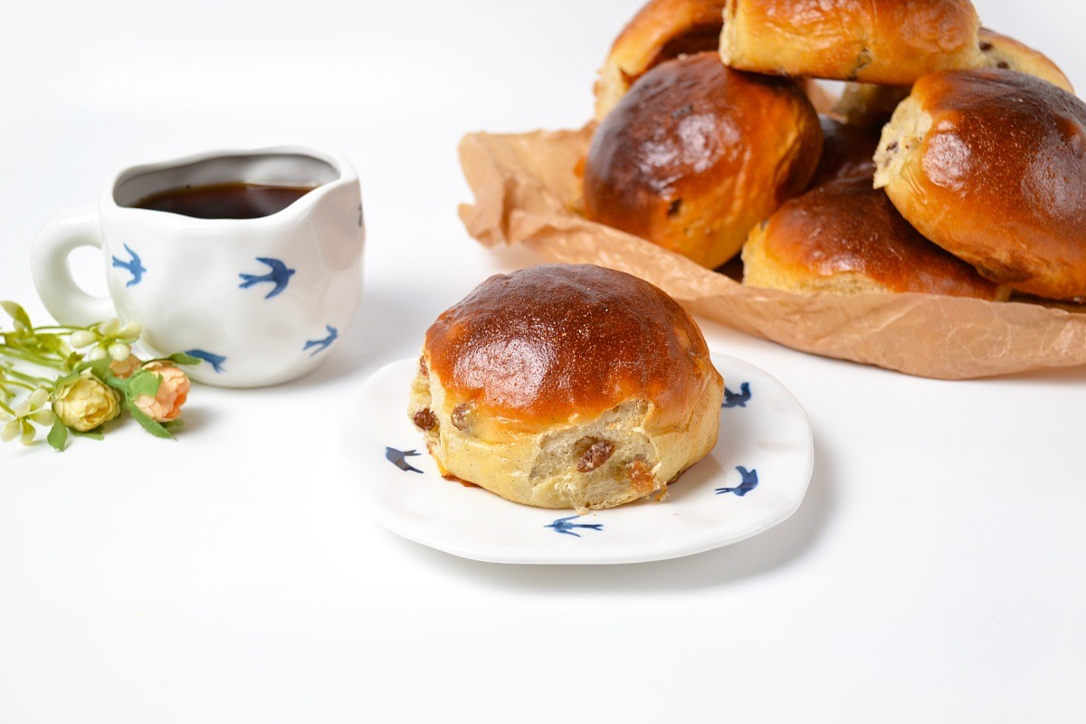 Tip: elastic raisins are better not to steam boiling water, it will lose its shape and can spread in buns.