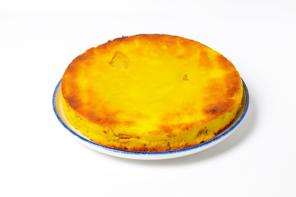 Turn over, remove the foil and cut the manna with apples into portions.