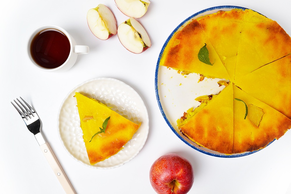 Serve manna with apples on kefir with morning coffee, lunch tea or as an afternoon snack. The pie turns out sweet, aromatic and nutritious. Enjoy your tea!