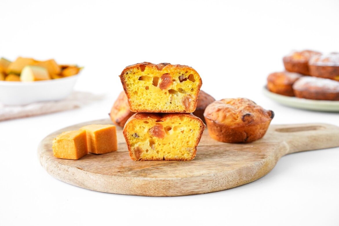 Preheat the oven to 180°C. Bake pumpkin raisin muffins for 40-50 minutes until golden brown. Check doneness with a wooden skewer: it should come out dry and clean. If the tops begin to brown too quickly, cover the cupcakes with foil.