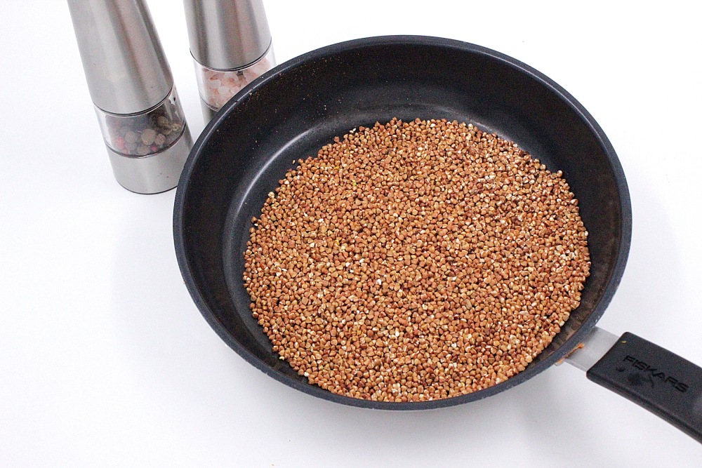 Rinse the buckwheat and fry over medium heat for 2-3 minutes.