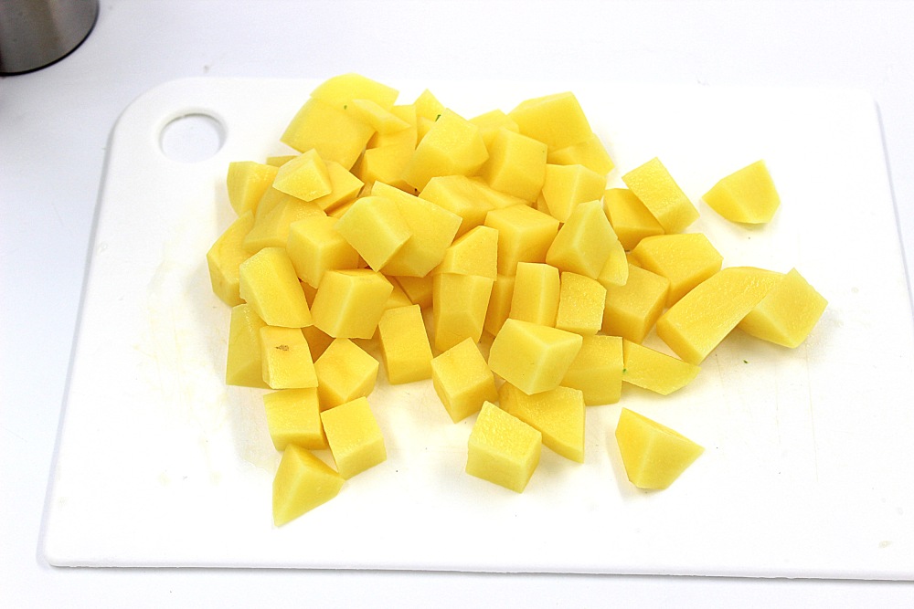 Prepare ingredients for buckwheat soup with potatoes and beef.