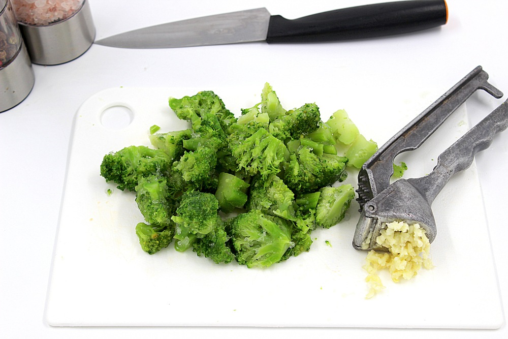 Frozen broccoli cooks very quickly, so don't worry, finely chopped florets will be ready in 3 minutes.