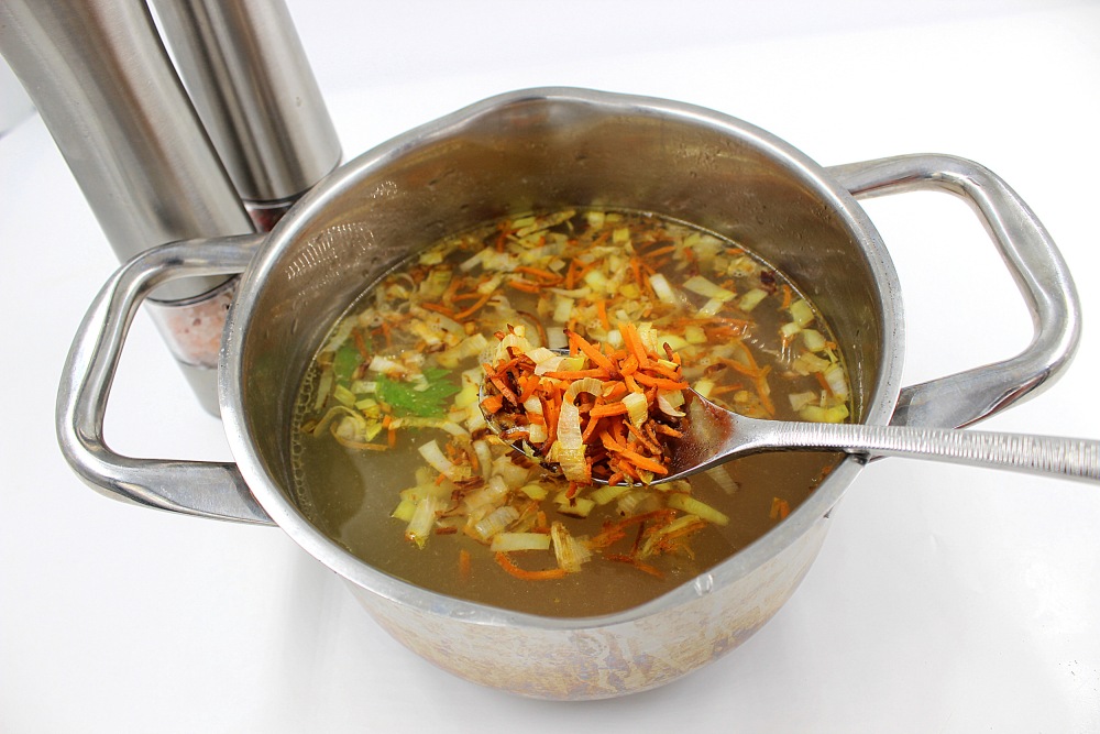 Step 4Over low heat, lightly fry the onions and carrots with butter. If you don’t need any golden brown crusts, then I often use butter. It has a low combustion temperature, but is suitable for light sautéing. I love the creamy taste. For now, let the chicken cook, the frying is ready, then we’ll just assemble the soup.