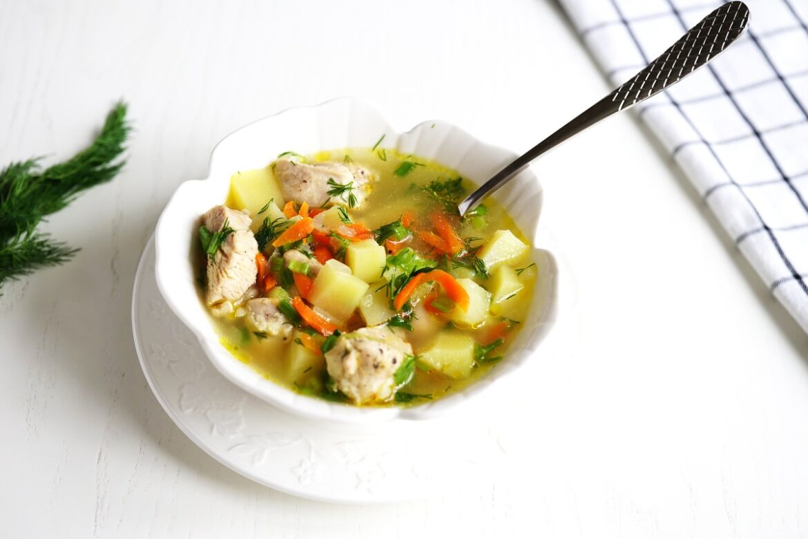 Soup with turkey and potatoes is ready. It goes very well with sour cream.
