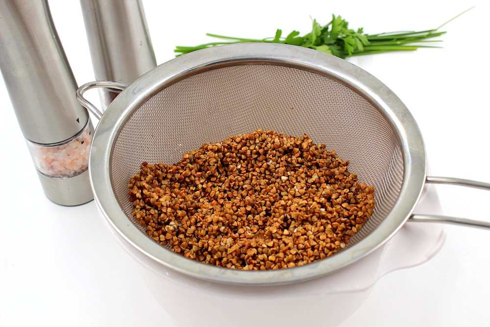 Rinse the buckwheat from debris and place in a sieve.