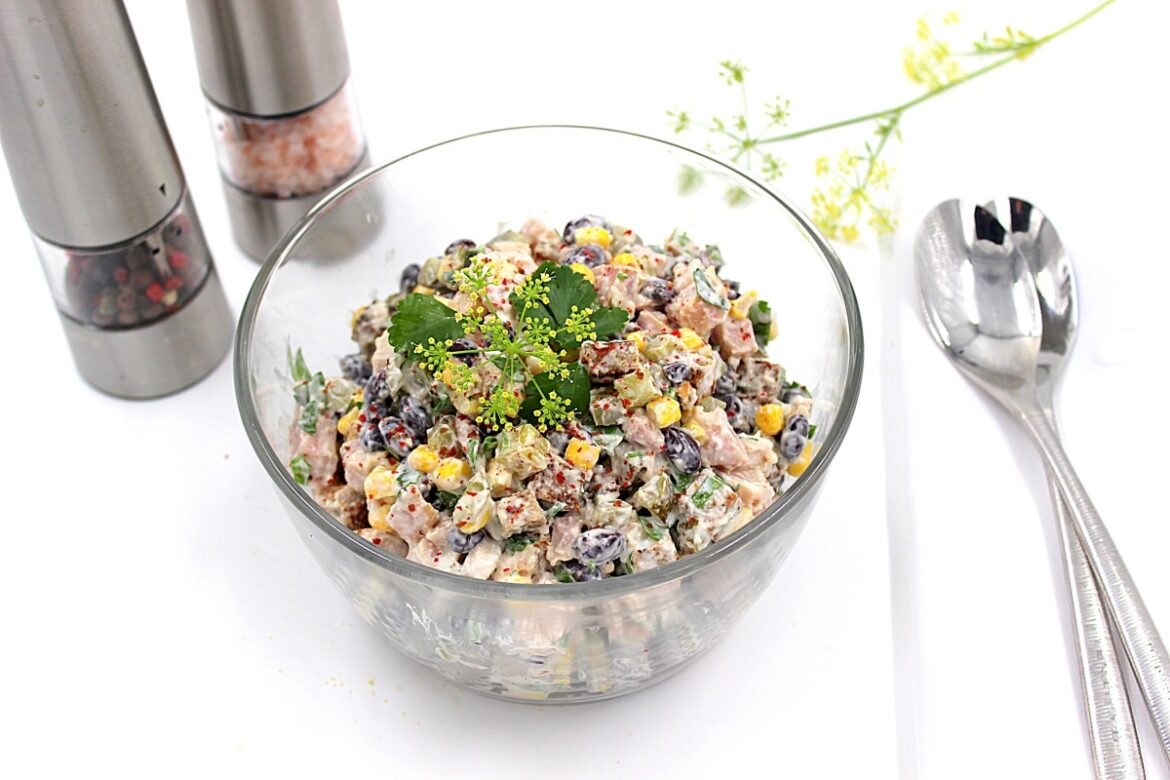Slightly decorate with parsley and voila, a salad with chicken and beans is ready.