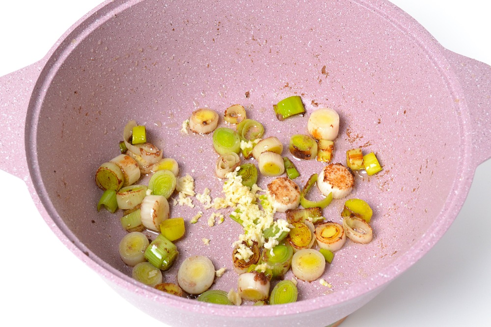 Tip: Any onion you have on hand will do. The recipe uses leek — its pleasant aroma perfectly complements this dish.