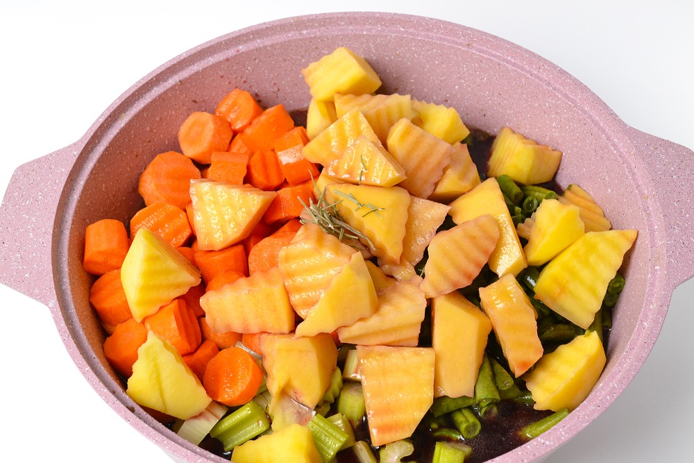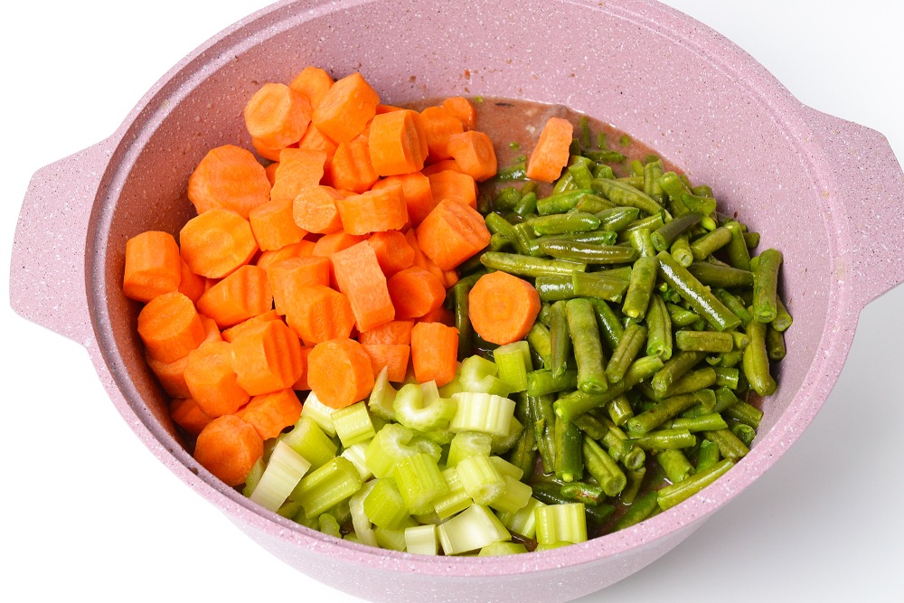 Celery perfectly complements the other ingredients and enriches the taste, so I don’t recommend excluding it. But green beans can be replaced with part of carrots or potatoes. But it makes the roast more beautiful.
