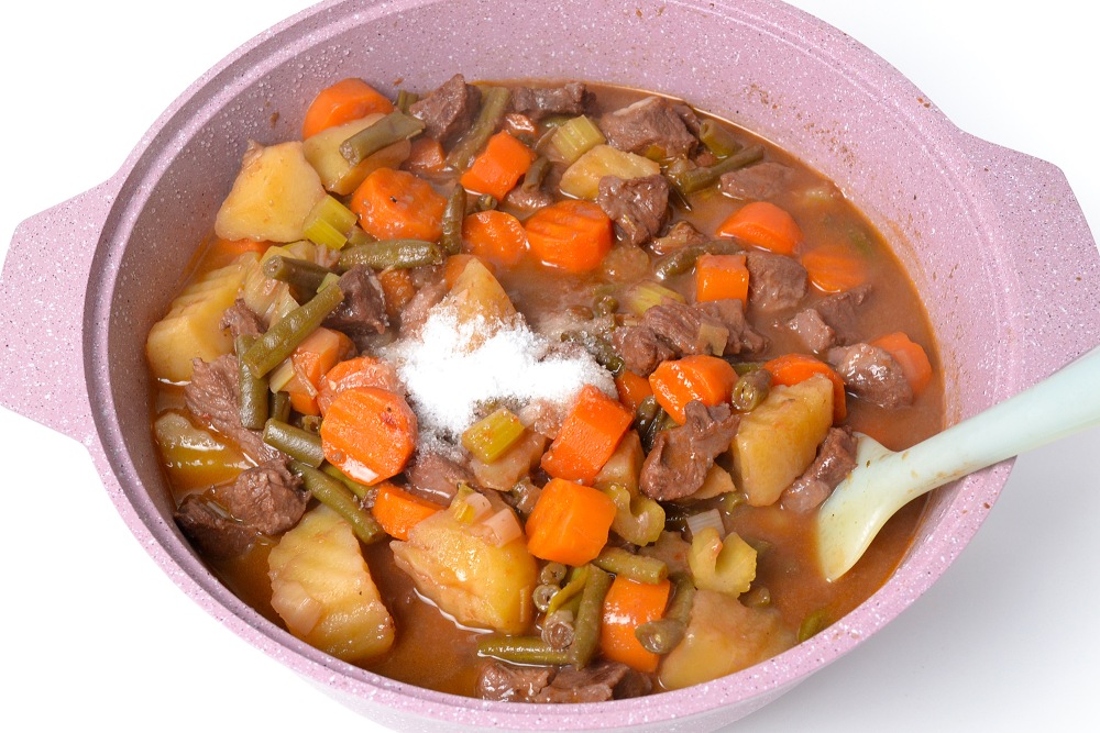 10 minutes before the roast beef is ready, add salt, stir, and cover with a lid.