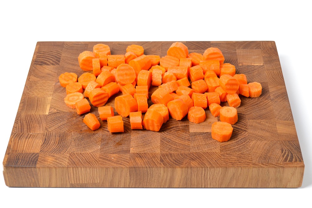 While the meat is roasting, coarsely chop the carrots. I use a curly knife to cut into circles 1.5-2 cm thick. The larger the diameter of the carrots, the thinner the circles.