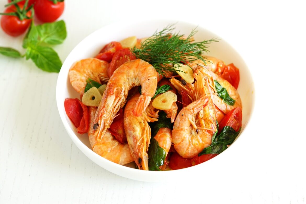 Put on a serving plate and serve. They can be eaten immediately or cool. The sauce that turned out when cooking can be added to shrimp. It goes well with a crispy baguette or the fried slices of Chiabatta. Additionally, shrimp can be decorated with fresh dill.