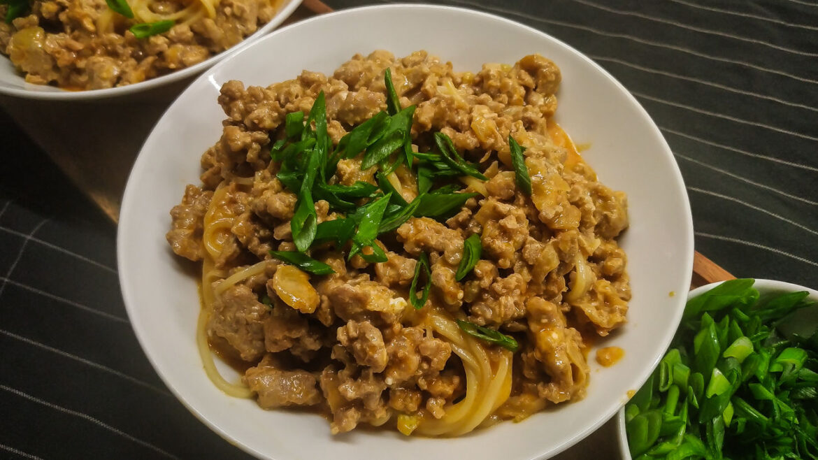 Add noodles, mix, warm up for a minute, remove from heat.