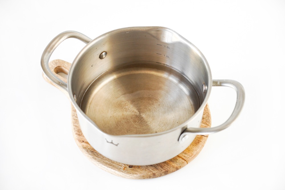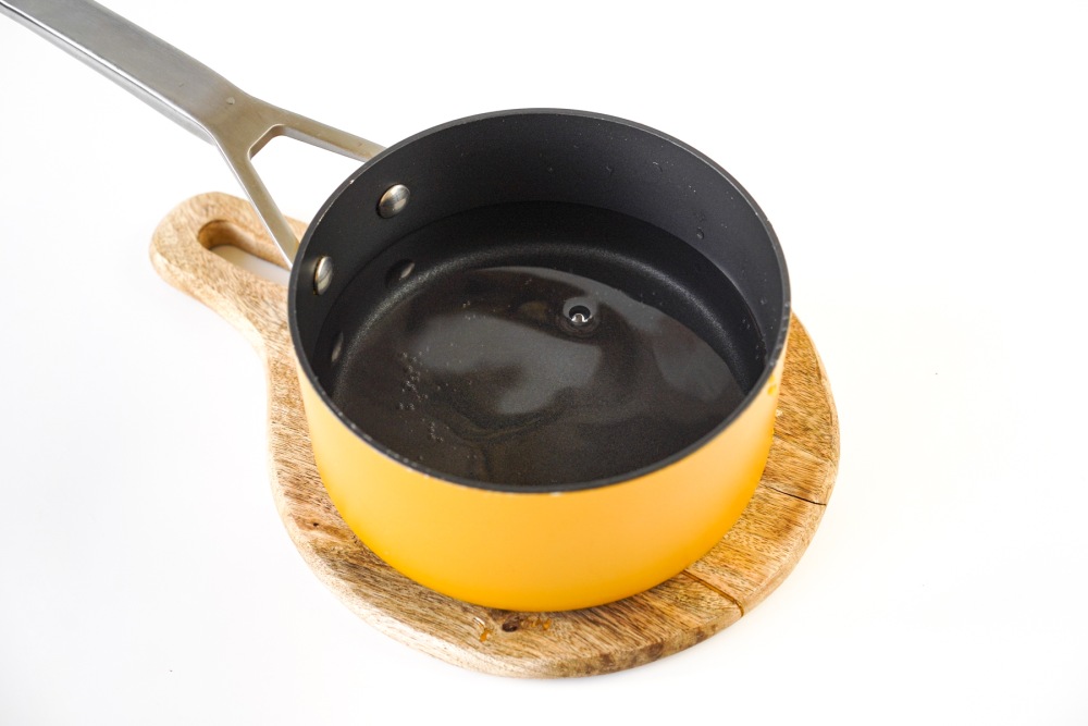 Pour water into the pan, Pour the water into the pan and place it on the stove over high heat. Cover with a lid to help the water heat up faster. Wait until the water begins to actively boil.