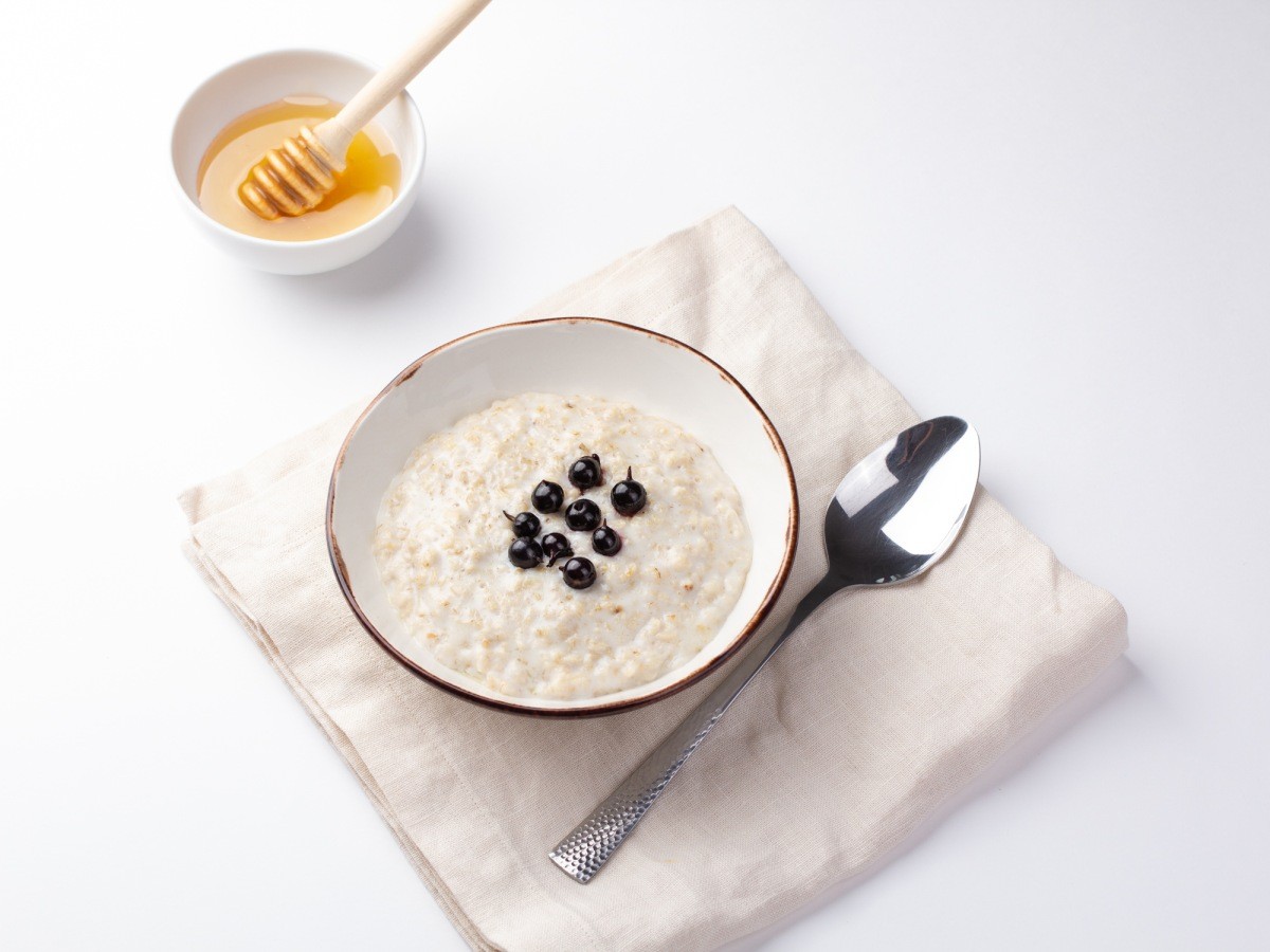 Prepare all the necessary ingredients for making oatmeal with milk.