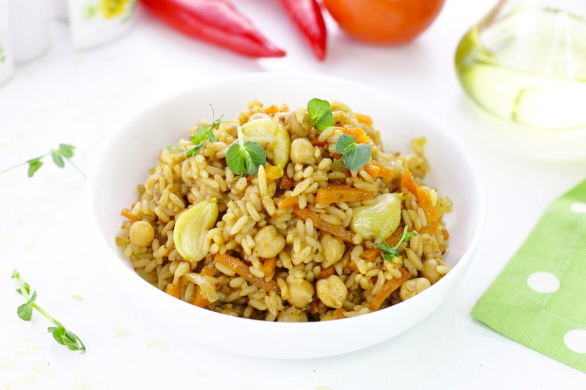 Prepare the necessary ingredients for the preparation of lean pilaf with chickpeas.