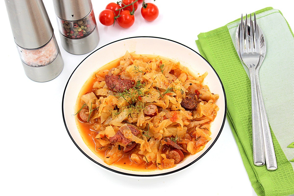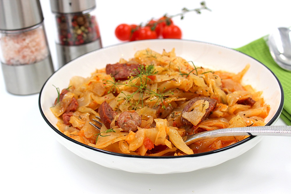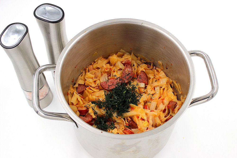 Step 10At the end, add dill and, if necessary, salt and pepper. Simmer the cabbage and sausage for a couple more minutes.