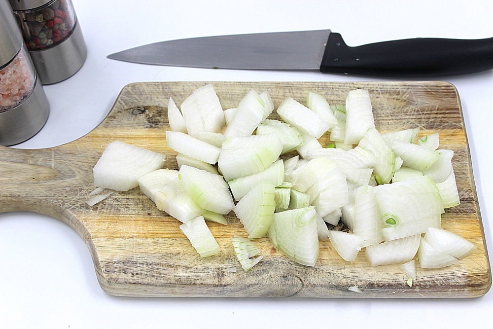 Step 2Cut the onion into medium cubes. Watch the master class “HOW TO SPEND NO MORE THAN 1 HOUR A DAY IN THE KITCHEN AND AT THE same time feed everyone tasty and healthy”👉🏻HERE