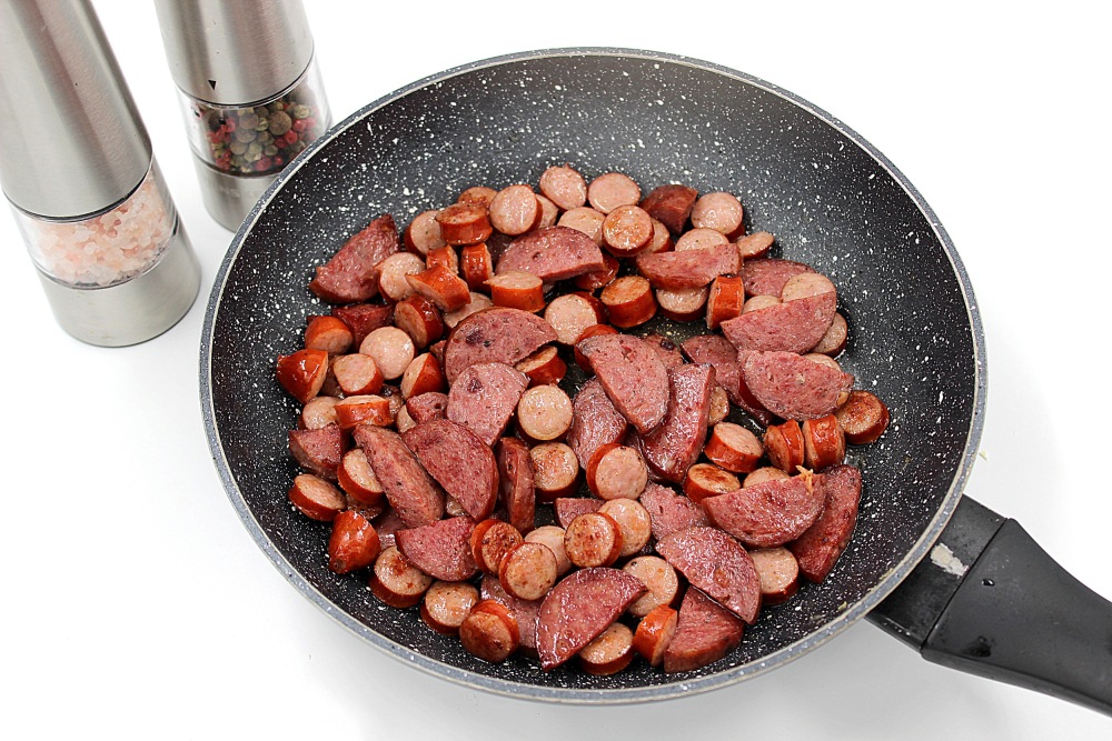 Step 8Fry the sausage until lightly browned. You can skip this step, but after frying, the taste becomes brighter and richer for me.