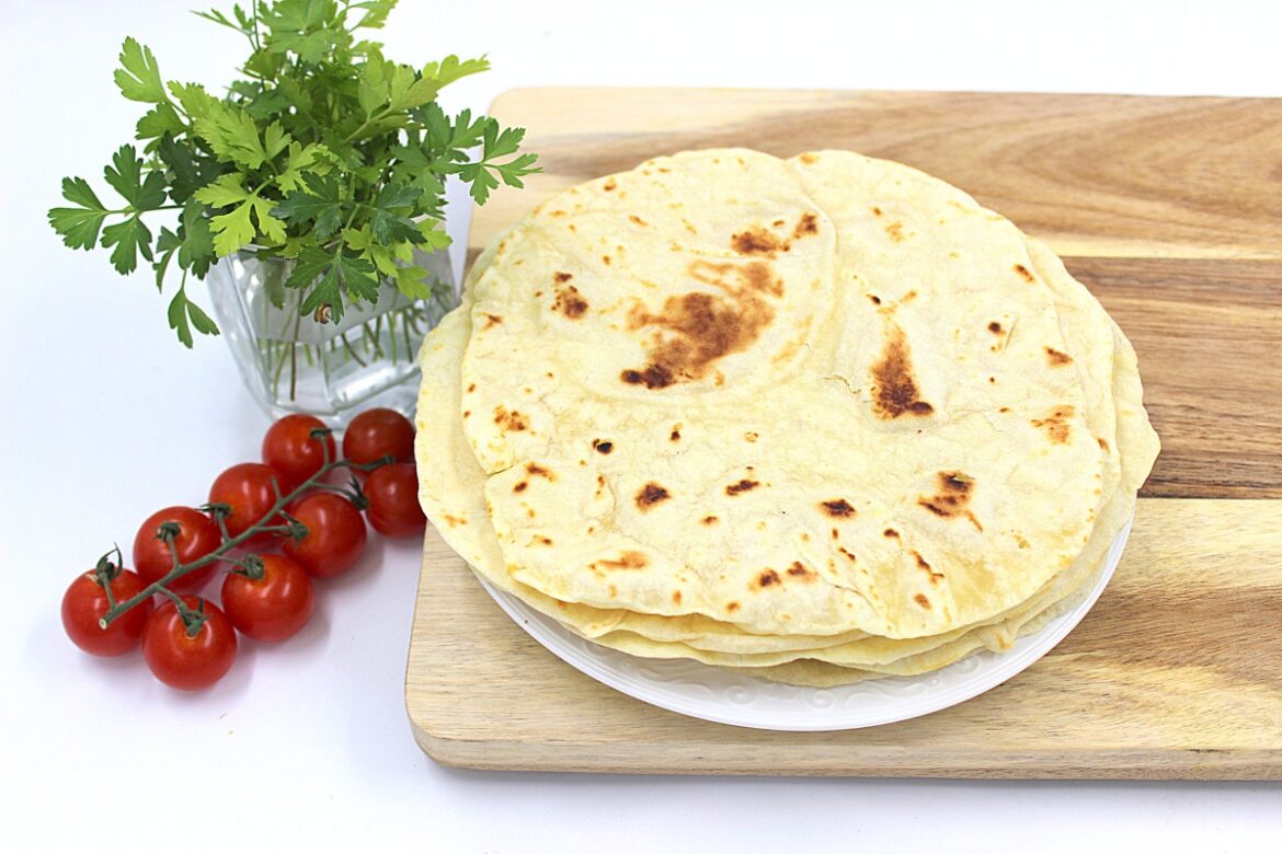 From this amount of dough I make 6 pieces of classic tortillas, 20-22 cm in diameter.