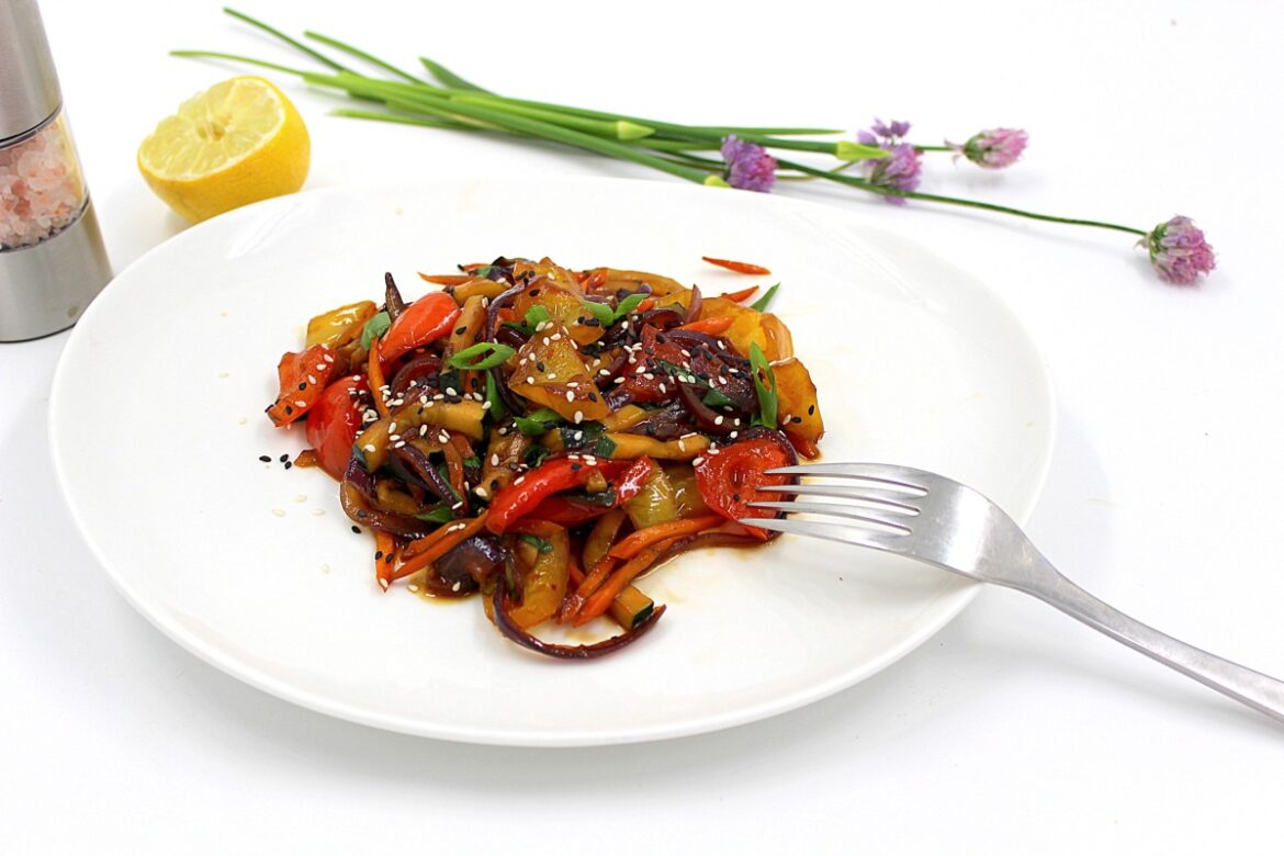 Mix everything well. Frying vegetables in Teriaki sauce stirring until the desired softness.